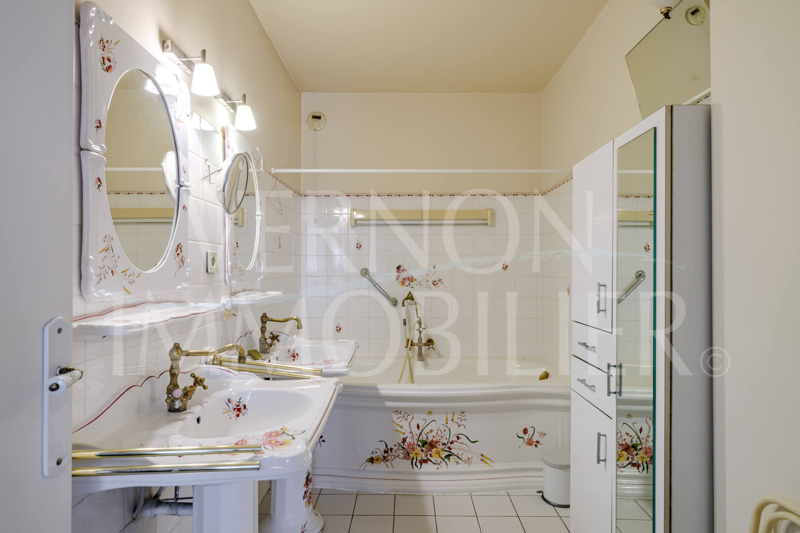 Grand appartement traversant, situé au 2eme étage comprenant une grande entrée desservant une cuisine aménagée, un vaste salon/séjour avec une cheminée ouverte et un accès à un balcon (également accessible depuis la cuisine), WC/buanderie, un couloir, deux chambres avec chacune leur salle de bains respective dont une dotée d’un balcon.