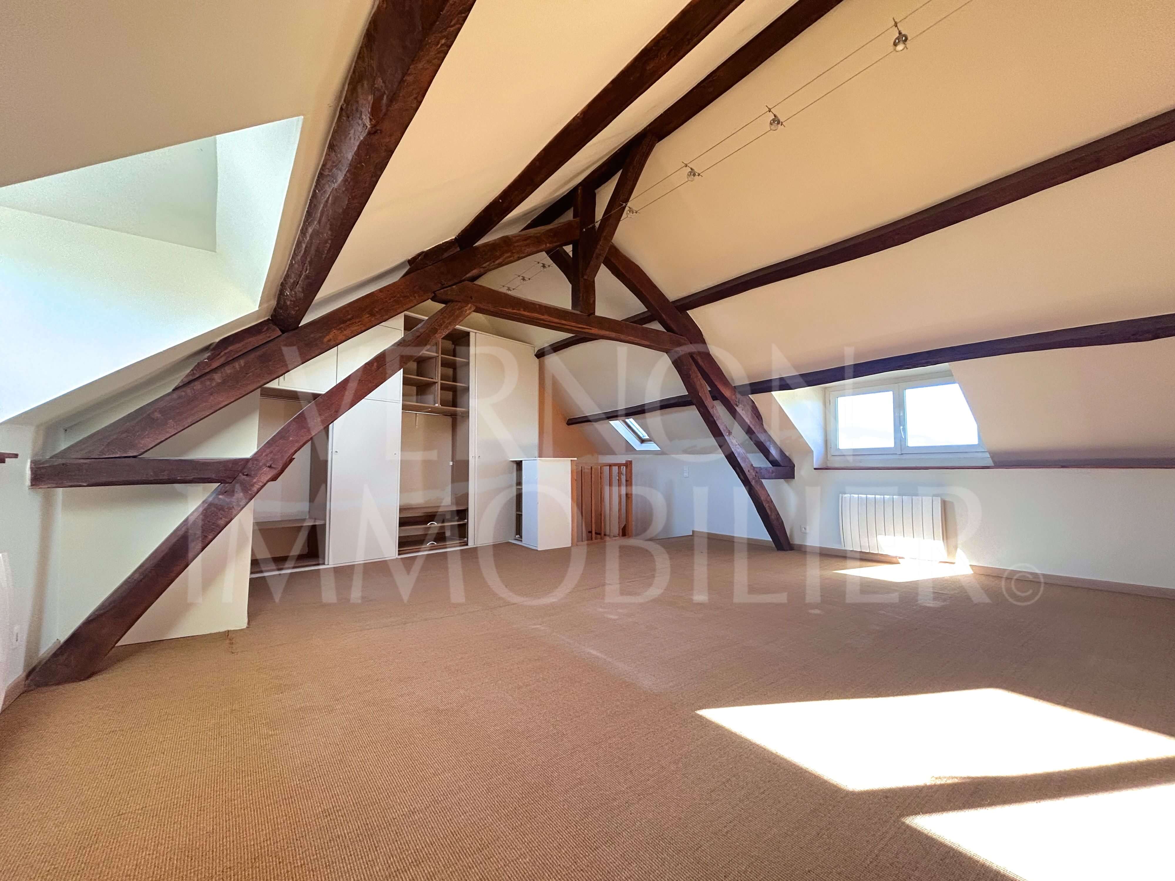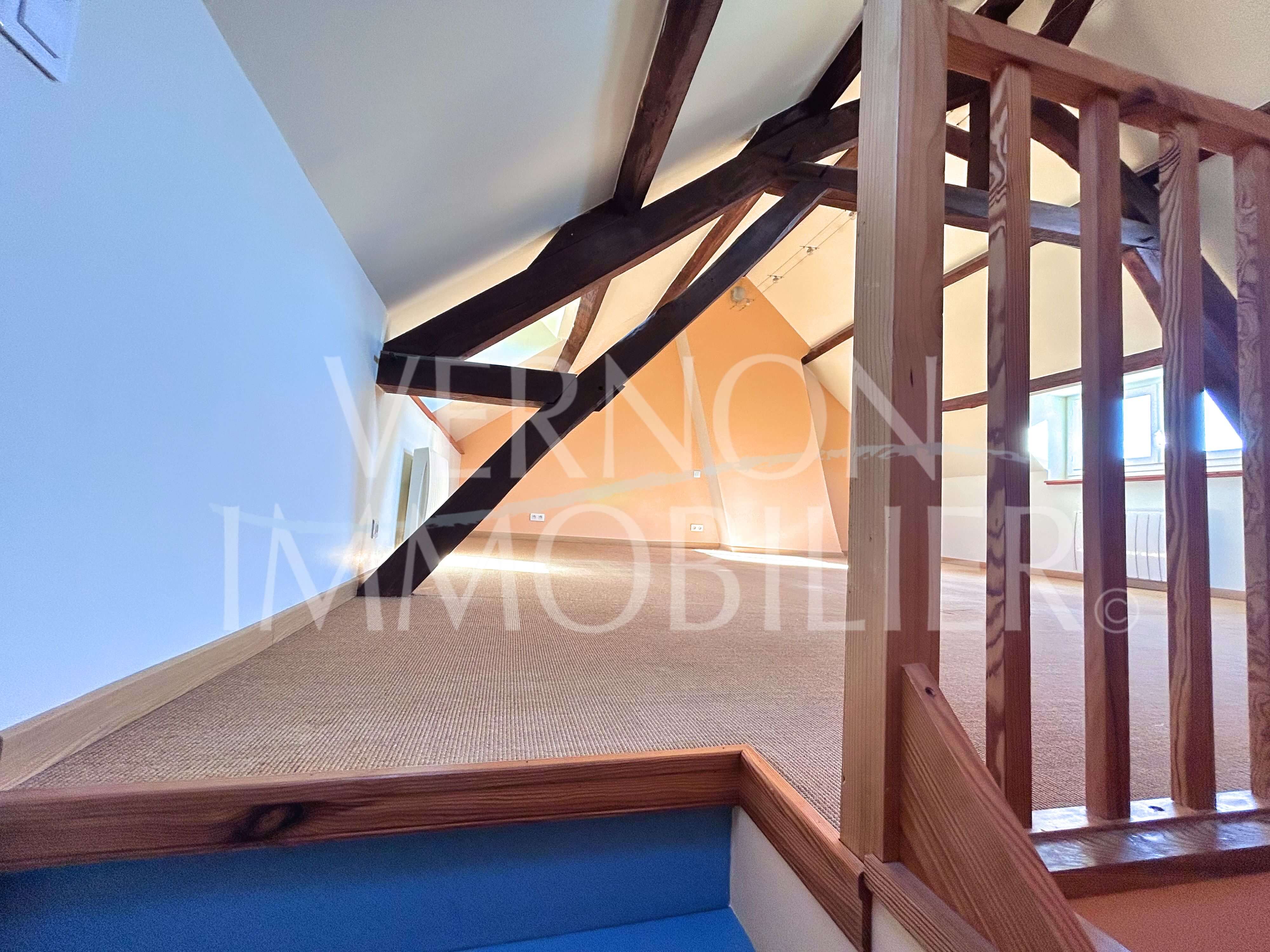 Au deuxième étage : une belle chambre cathédrale de 32 m² très lumineuse (2 fenêtres et 2 vélux) et traversante est/ouest (3.25 m d’hauteur sous plafond) disposant d’un grand dressing intégré avec de nombreux rangements.
