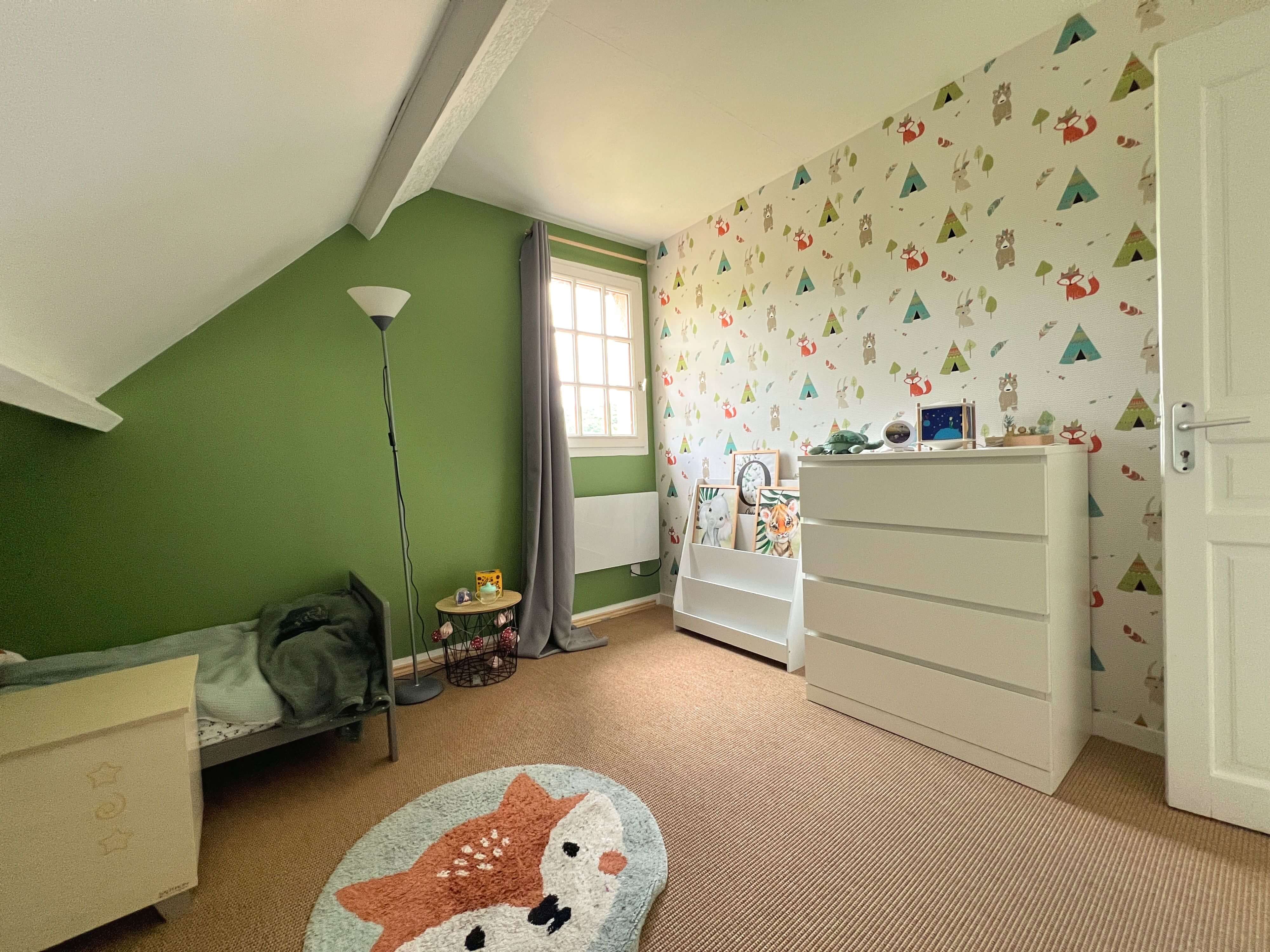 A l’étage : une belle pièce palière distribue trois chambres dont une avec un dressing et une salle de bains.