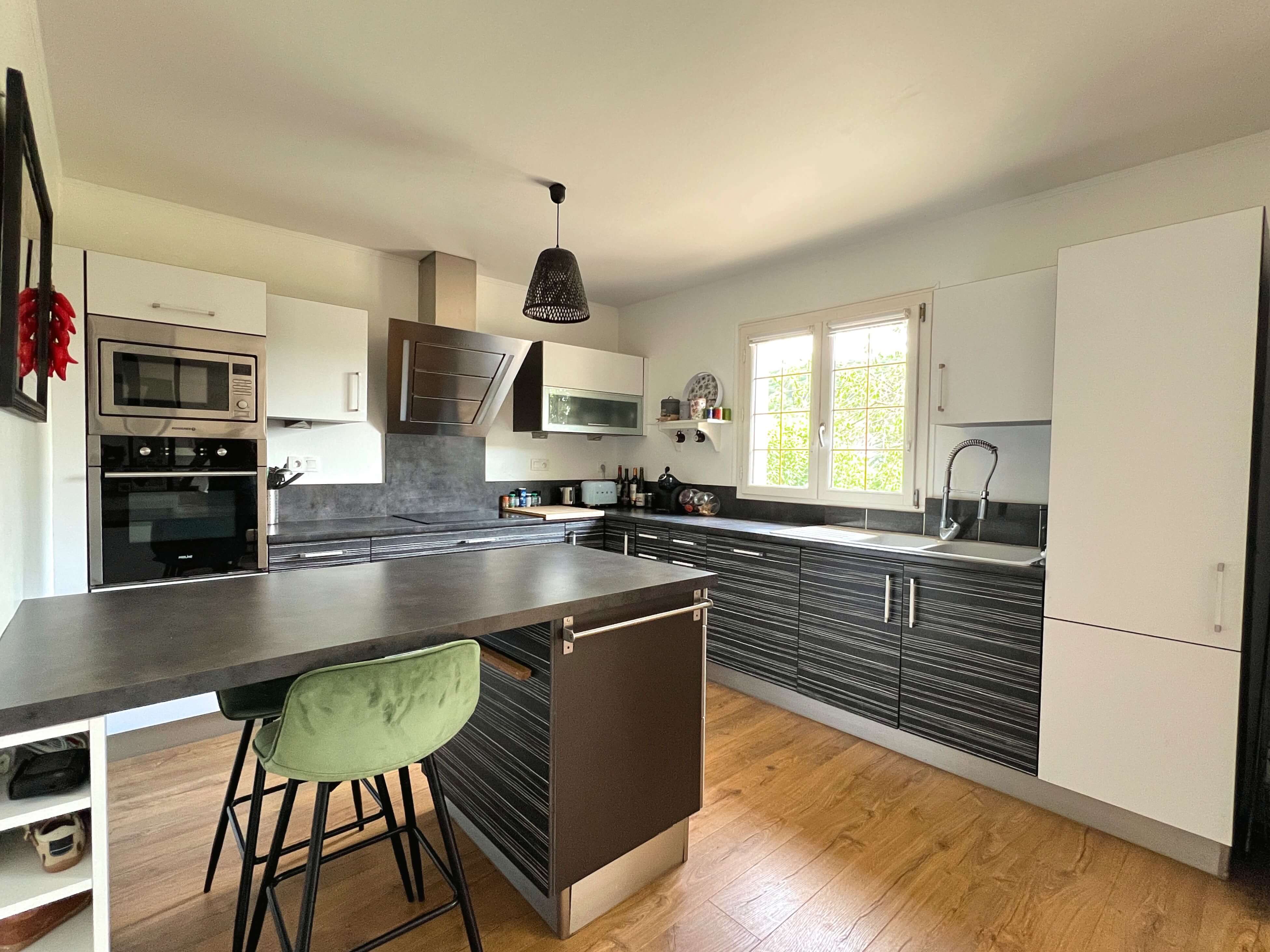 Cette maison, édifiée sur un sous-sol total, comprend au rez-de-chaussée : une entrée desservant une belle pièce de vie traversante avec une cheminée insert, une très belle cuisine ouverte, une véranda, une salle d’eau et un wc.