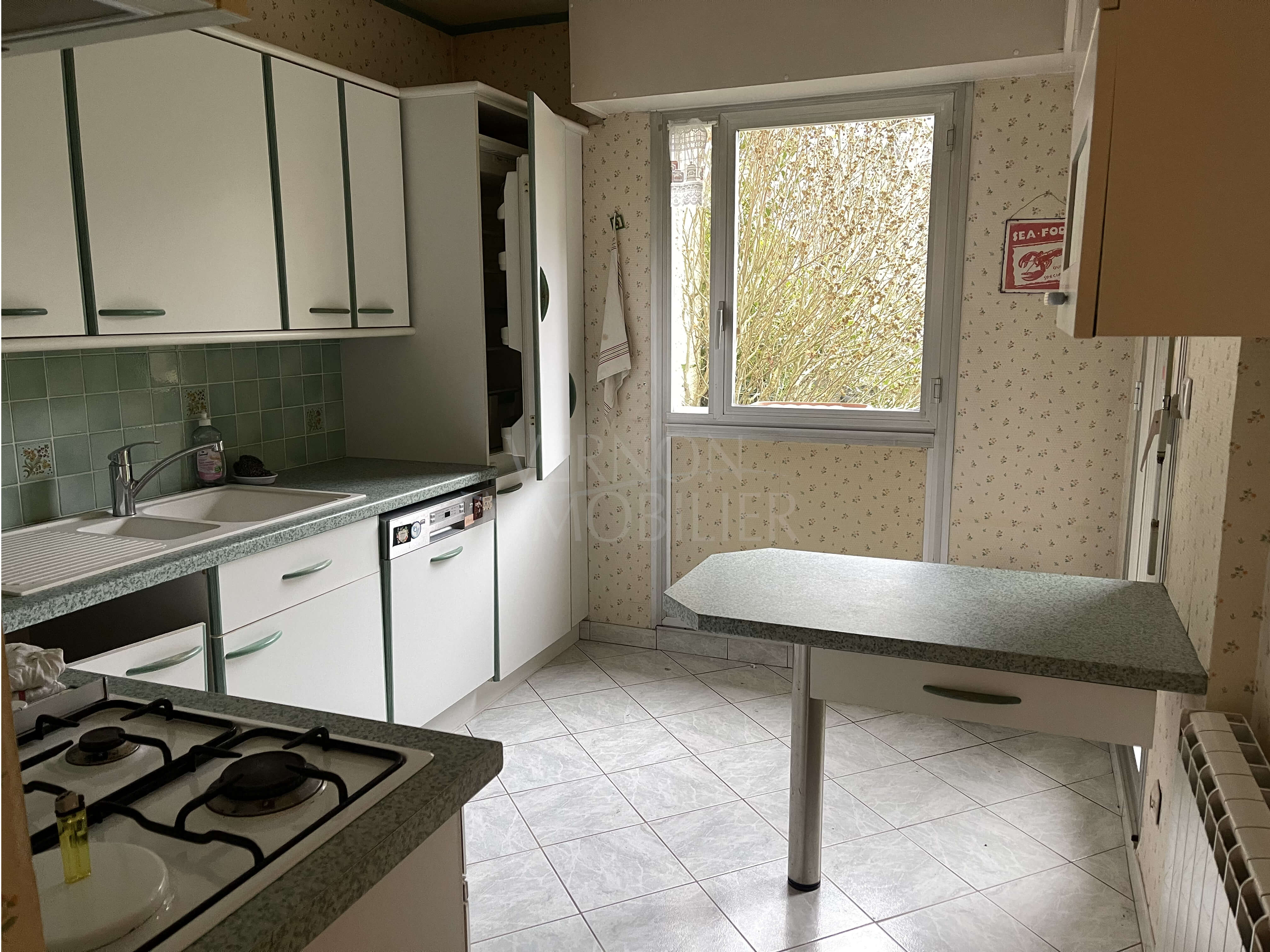 A proximité du centre-ville de Vernon et de la gare, appartement lumineux en très bon état comprenant une entrée avec placard, une cuisine aménagée, un cellier, un salon/séjour avec un balcon, deux chambres, une salle d’eau et un wc.