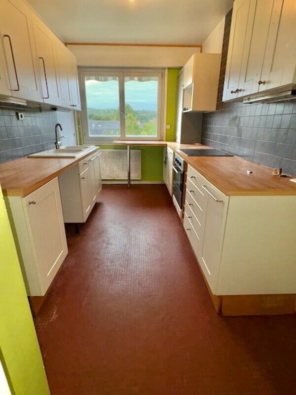 Cet appartement rénové comprenant une entrée avec placard, un séjour, une cuisine, un dégagement avec placard, une chambre, une salle d’eau et un w.c séparé.