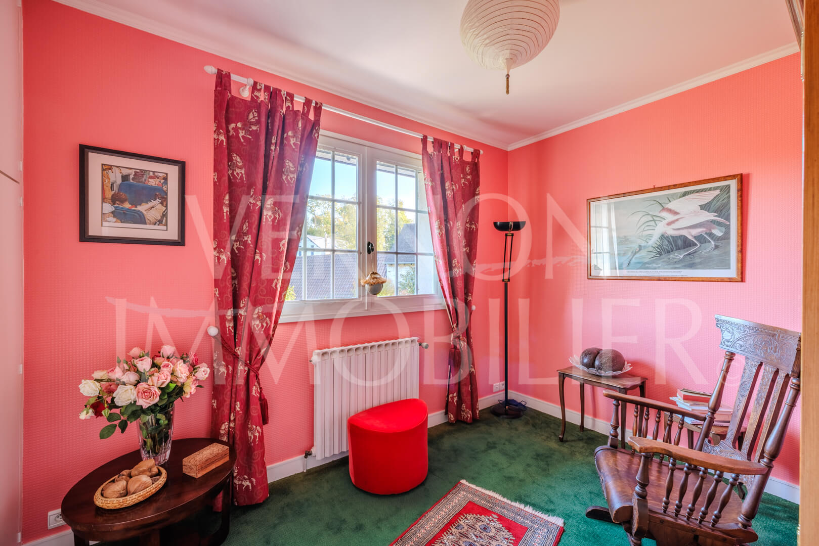 • Un salon TV / bureau de 30 m² avec poêle à pellets